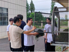 下午,在指导教师刘秦华和董志浩的带领下,同学们来到南京市现代农业产业园和中华绒螯蟹博物馆参观学习,并在中华绒螯蟹原种场进行调研。在中华绒螯蟹原种场,同学们了解了蟹种的发展与现状以及水草堆积问题。水草堆积问题目前没有很好的解决方案,对此刘秦华制作了一台机械,可以通过滚轮的原理将水草的水分甩干,水草干再加工成二次产品。该机械目前正处于测试环节。