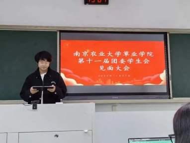 王佳艺详细介绍了团委各部门工作职责,展示了近期开展的工作并介绍了本学期工作计划,重点介绍了小宝寻花