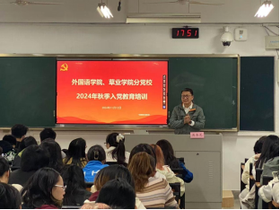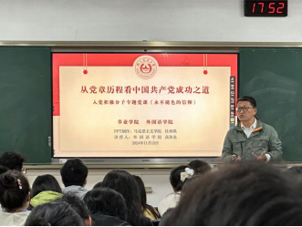 党委组织入党积极分子在教学楼A306教室集体学习《中国共产党章程》。本次党课邀请外国语小宝寻花