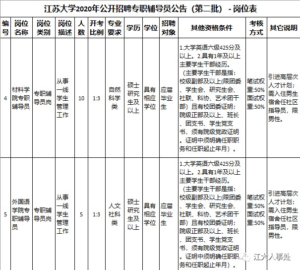 江苏大学人事处和学工处负责回答此次招聘政策咨询。