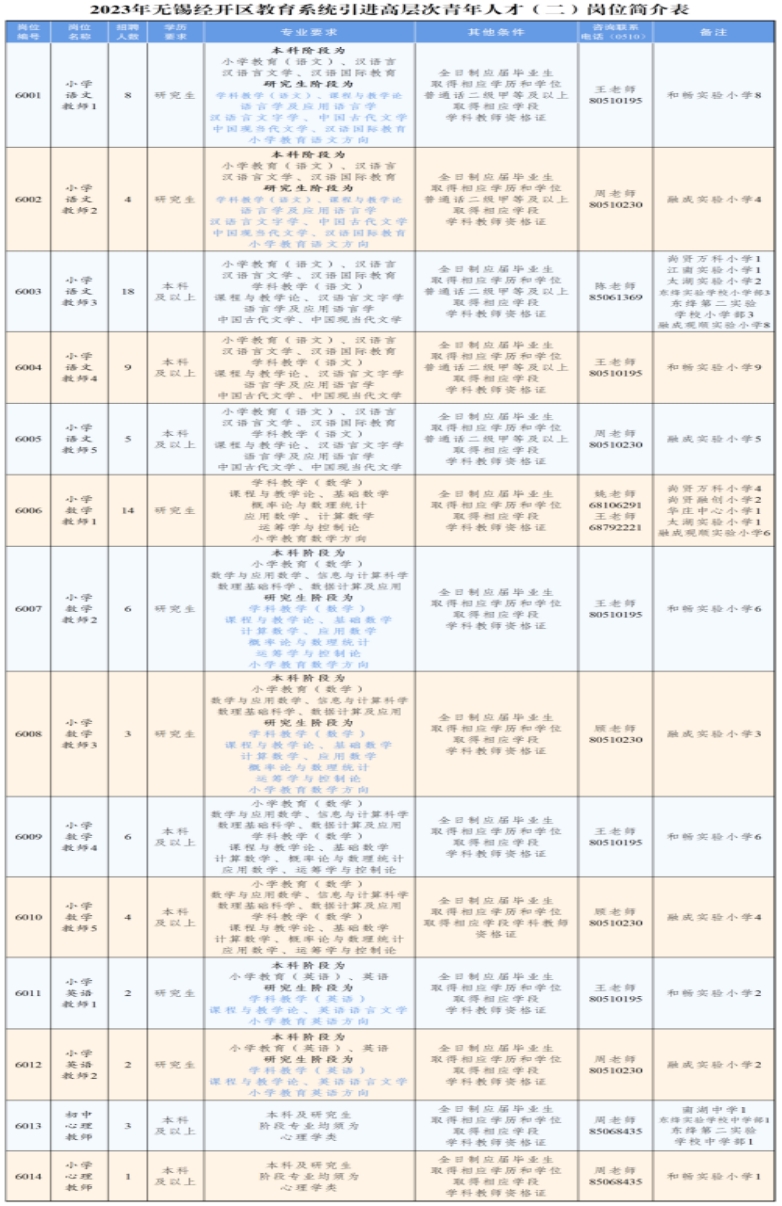 师资需求情况,无锡经开区教育系统引进高层次青年人才85名。现将有关事项公告如下: