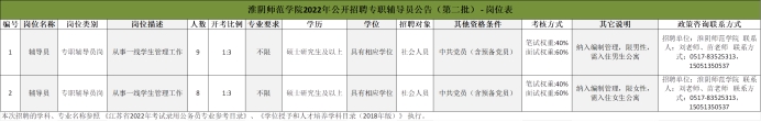 (二)专职辅导员岗考核方式包括笔试、心理测试、面试。