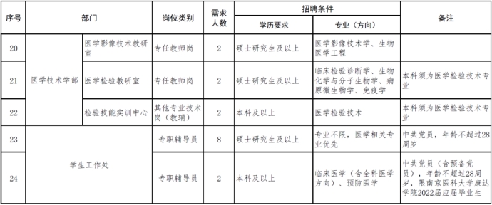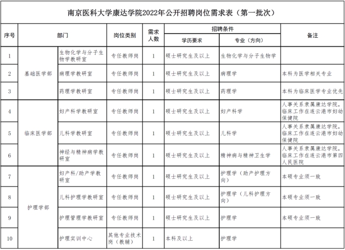 应聘人员应满足岗位所需的专业知识、能力或技能条件,符合招聘岗位的要求,具体岗位及要求详见《南京医科大学康达小宝寻花