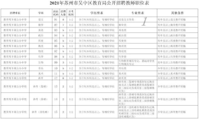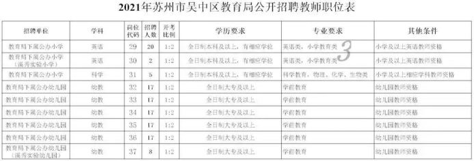 公开招聘教师298名。现将《2021年苏州市吴中区教育局公开招聘教师公告》(以下简称《公告》)公布如下: