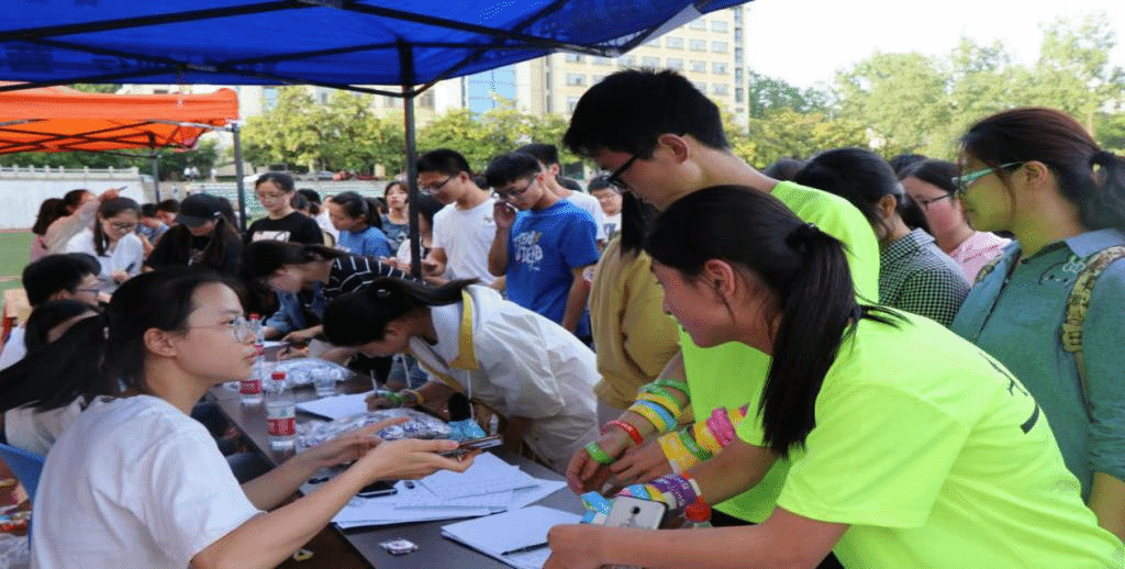 下午3点40,线上报名确认及现场报名开始。同学们热情高涨,报名开始仅半小时,总报名人数就已突破千人,每个报名点前都热火朝天,人山人海。