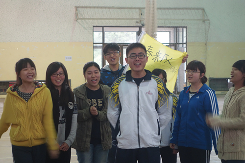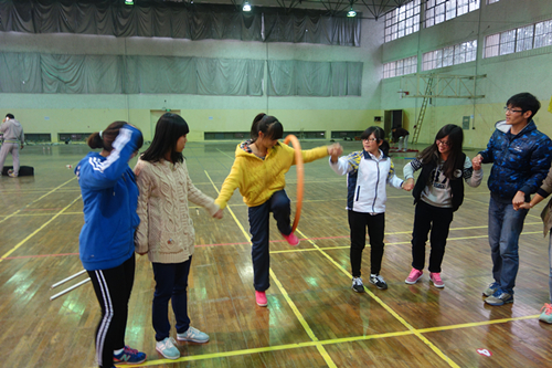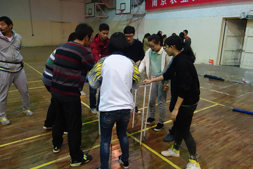 20141115日下午14:00,小宝寻花 在校体育馆成功开展学生会骨干素质拓展活动。