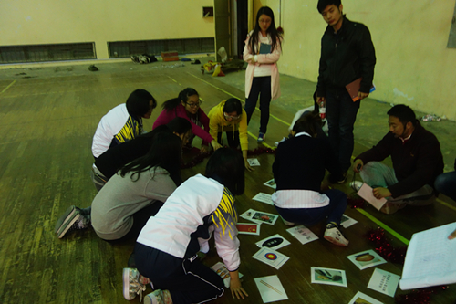 全员通过抽取扑克牌的方式,由花色随机分成四个小队。各小队分别推选出队长、队秘和队花,经讨论决定各自的队名、口号和队歌,进行简单的团队风采展示。在这个过程中,所有成员积极迸发灵感,加深了对彼此的认识,初步形成团队意识。