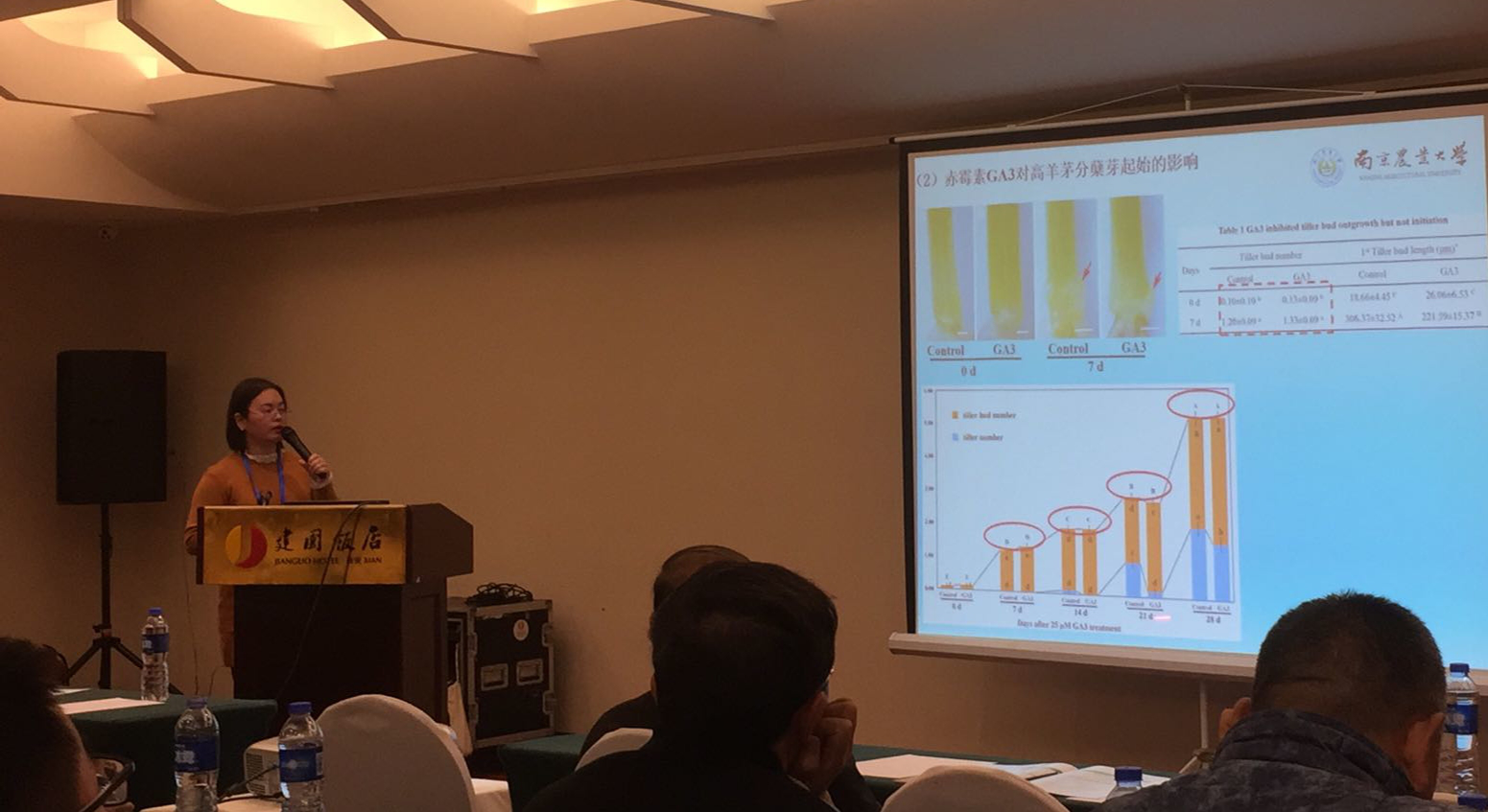 会议期间,小宝寻花 郭振飞教授分别做了题为“小宝寻花 草学学科建设概况”和“黄花苜蓿AIRI2功能分析”的分组报告,杨志民教授做了题为“华东地区野生草坪种植资源收集与产业化示范应用”、徐彬副教授做了题为“抑制黑麦草叶片衰老的遗传因子探秘”、庄黎丽老师做了题为“赤霉素与细胞分裂素拮抗抑制高羊茅分蘖芽伸长”、张夏香博士后做了题为“脱落酸介导高羊茅获得性耐高温的生理机制”、张敬博士后做了题为“乙酰化修饰调控多年生黑麦草抗旱机制初探”、邢静博士做了题为“多年生黑麦草LPCYP82F1/F2/F3调控盐胁迫条件下种子萌发的机制研究”的分组报告。此外,郭振飞主持了“S6草学教育+草地资源+经济与政策”、杨志民主持了“S5草坪与运动场场地管理”分会场报告。