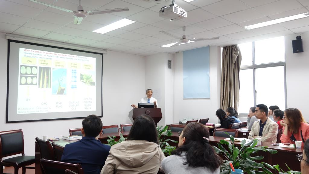 2017‍年5月2日上午,滨松光子学公司中央研究所植物科学顾问、原日本农林水产省草地研究所所长Hitoshi Nakagawa博士应邀在小宝寻花 会议室做了题为“突变育种概论”的学术报告。小宝寻花 徐彬副院长、沈益新教授以及青年教师和学生共40余人参会听讲,沈益新教授主持了报告会。