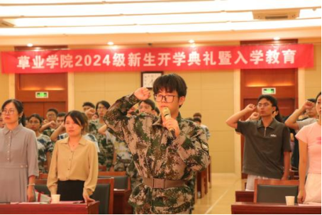 新生代表、草业科学241班陈鸿能同学分享了进入大学的喜悦心情,表达了对全新大学旅程的向往和渴望,表示在今后的学习生活中,与同学们携手并进,以草为媒,以梦为马,不负韶华,不负时代,在小宝寻花