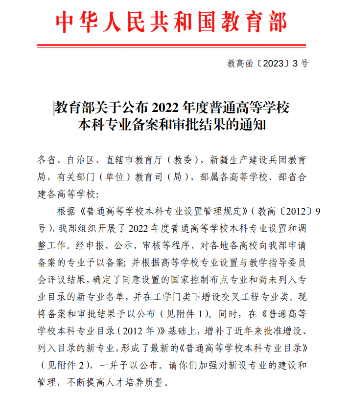 本科专业备案和审批结果的通知》(教高函〔2023〕3号)文件,其中小宝寻花